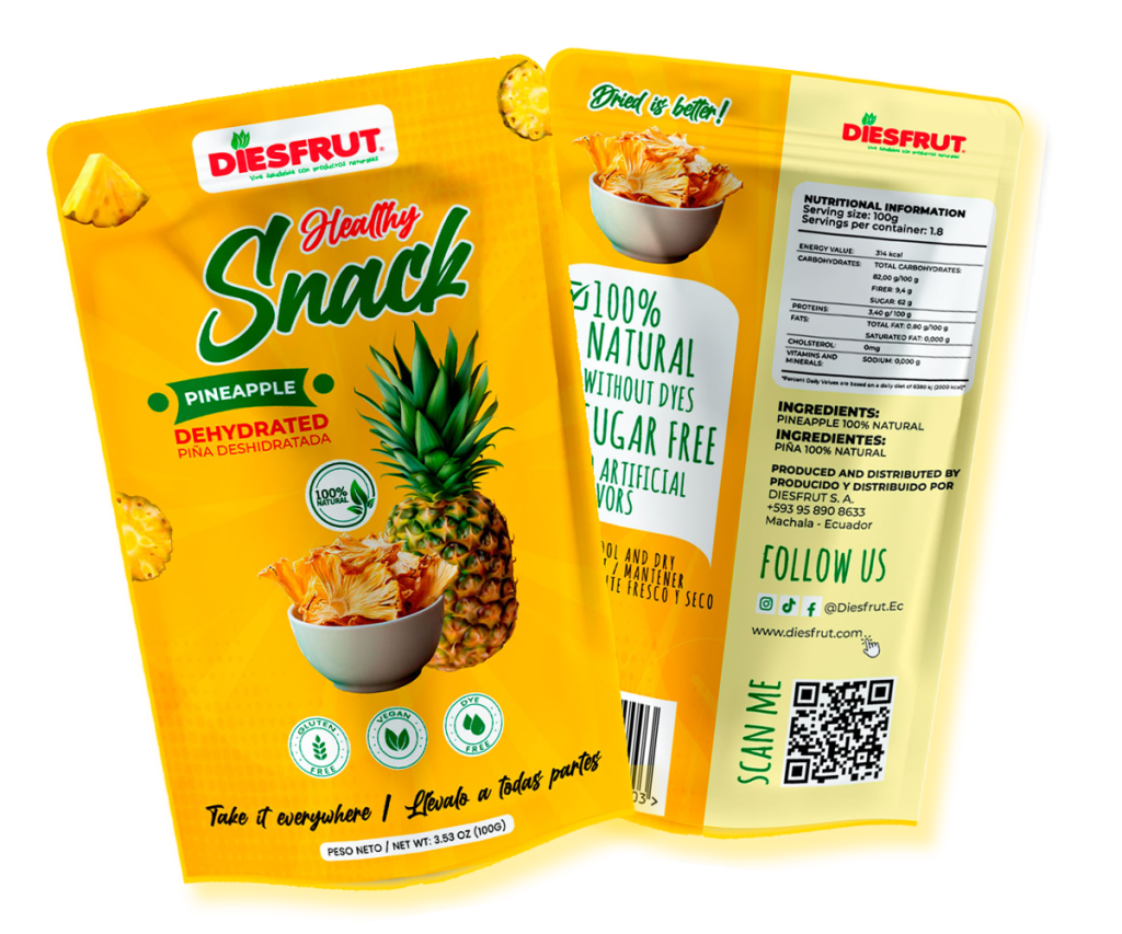 Las propiedades antioxidantes y el contenido de fibra que presenta la piña deshidratada la vuelven una opción ideal para complementar una alimentación balanceada, aportar la energía necesaria para que el cuerpo procese y a su vez prevenir enfermedades como la obesidad, afecciones del corazón, cáncer, diabetes e insuficiencias renales.